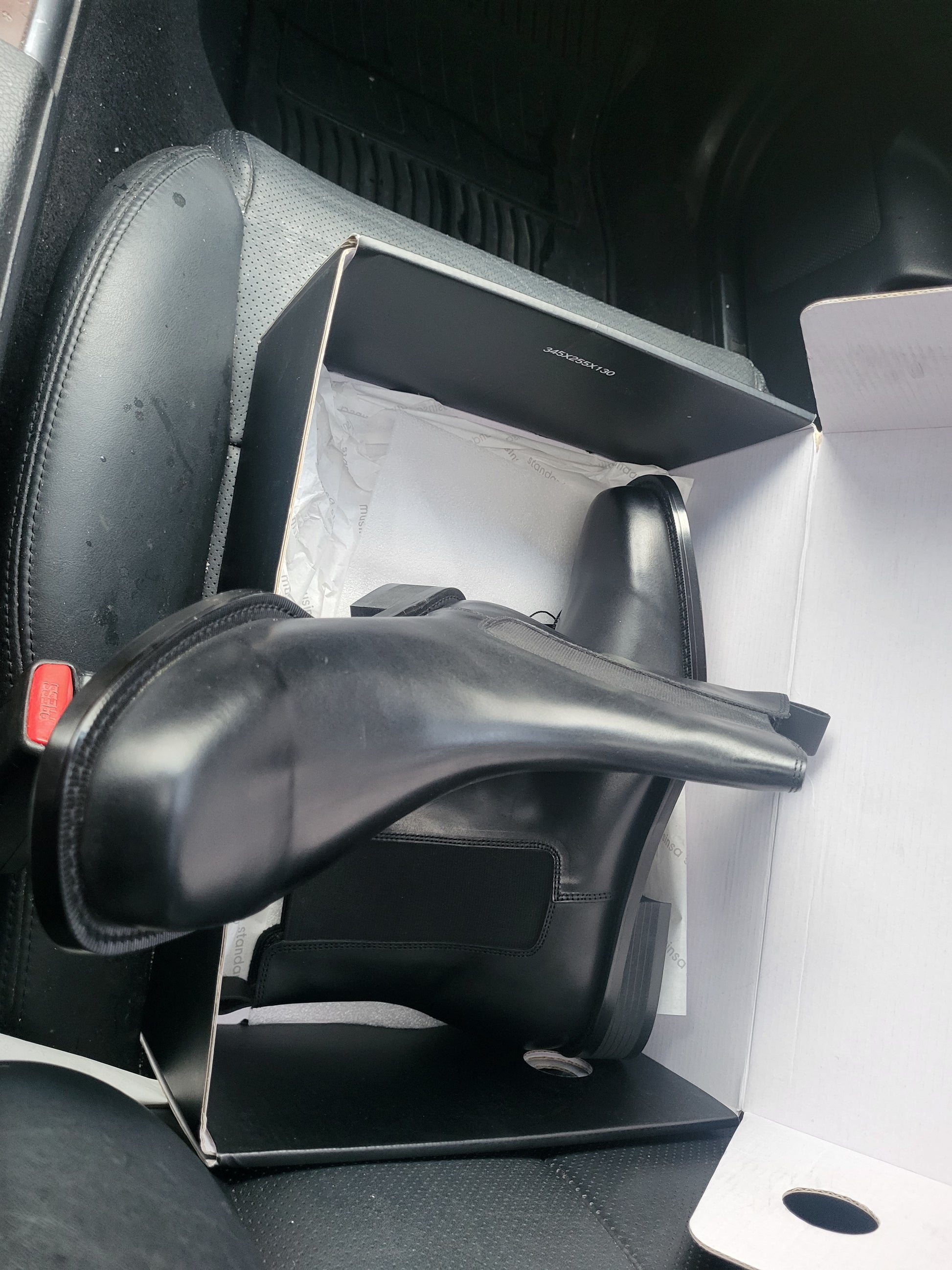 CHELSEA BOOTS . BLACK LEATHER BOOTS AVAILABLE FOR $ 79.00. SIZE 9.5 BUT FITS LIKE A U.S / CAN 10